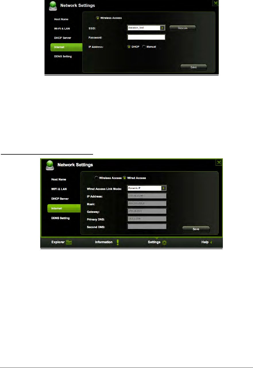 Internet access capability via the RJ45 or wireless, supporting 802.11 b/g/n speeds