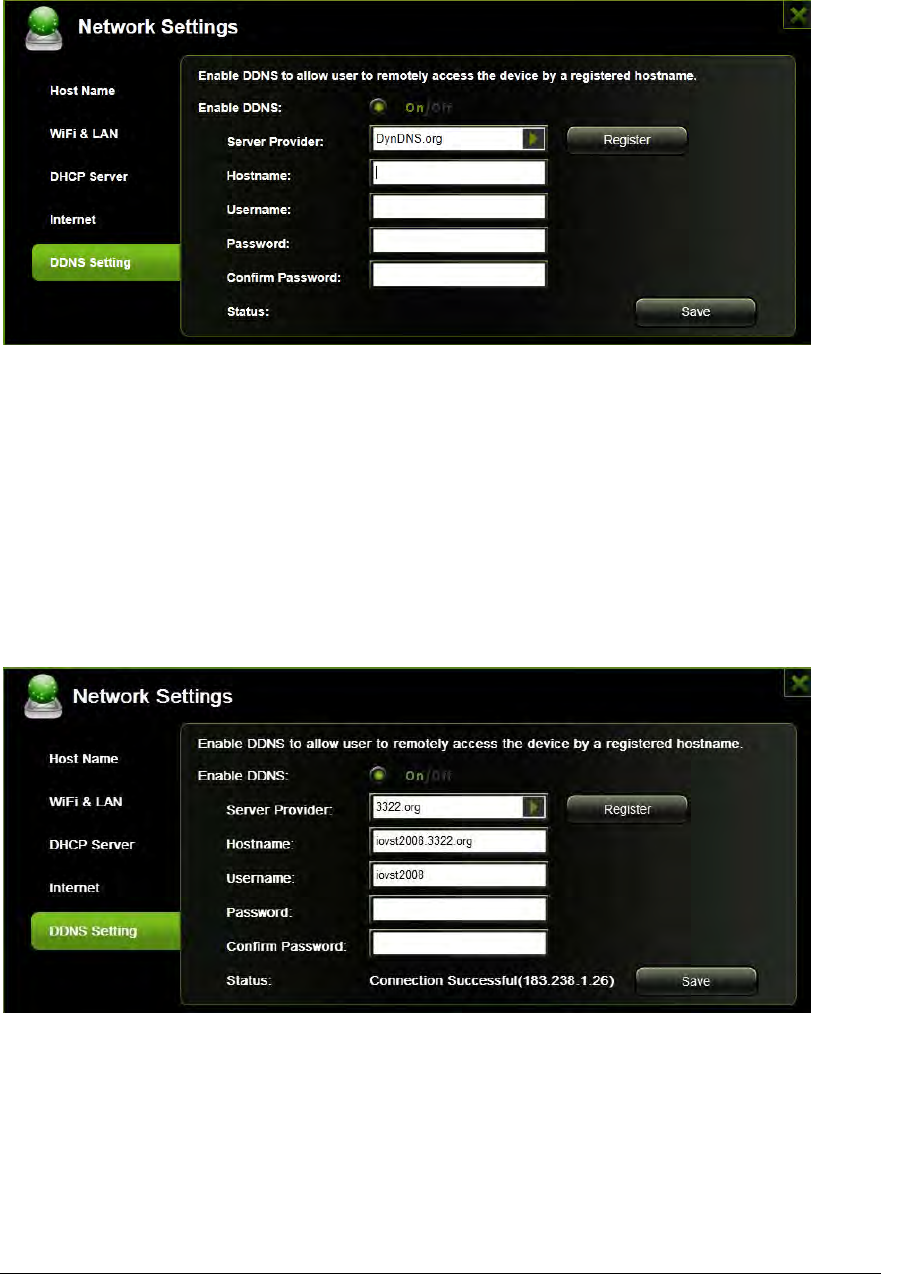 An account and password are acquired once the registration succeeds, and then apply for an DDNS