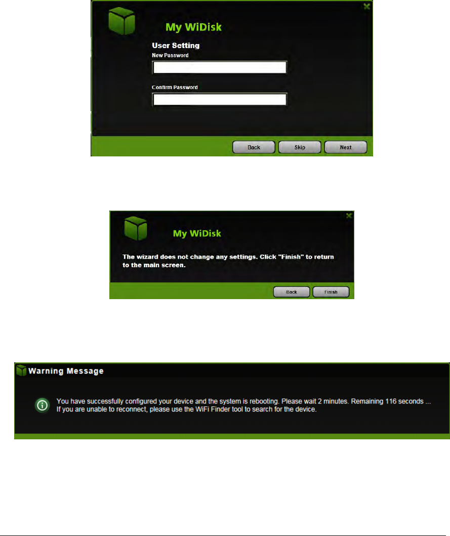 The Warning Message window will appear. The Wi-Fi SD/USB will automatically reboot once the