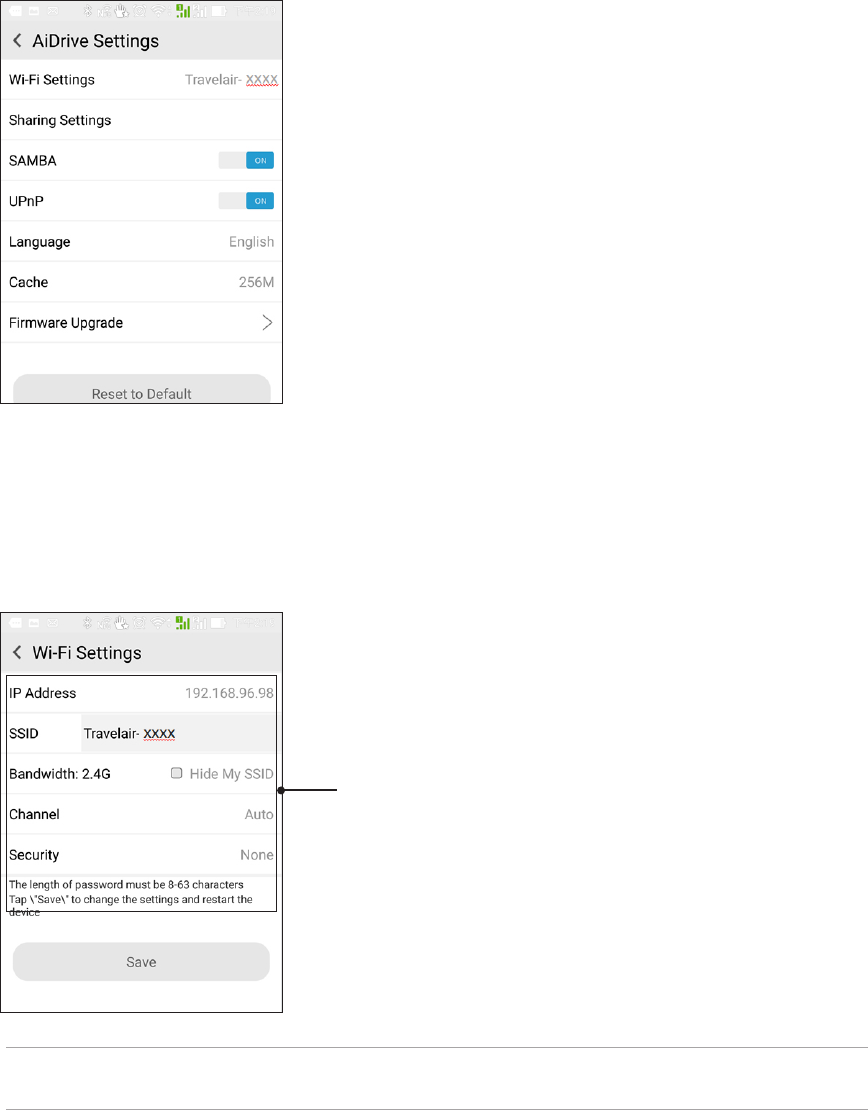 • Onyourmobiledevice,searchforandconnecttothenetworkTravelair-XXXX.