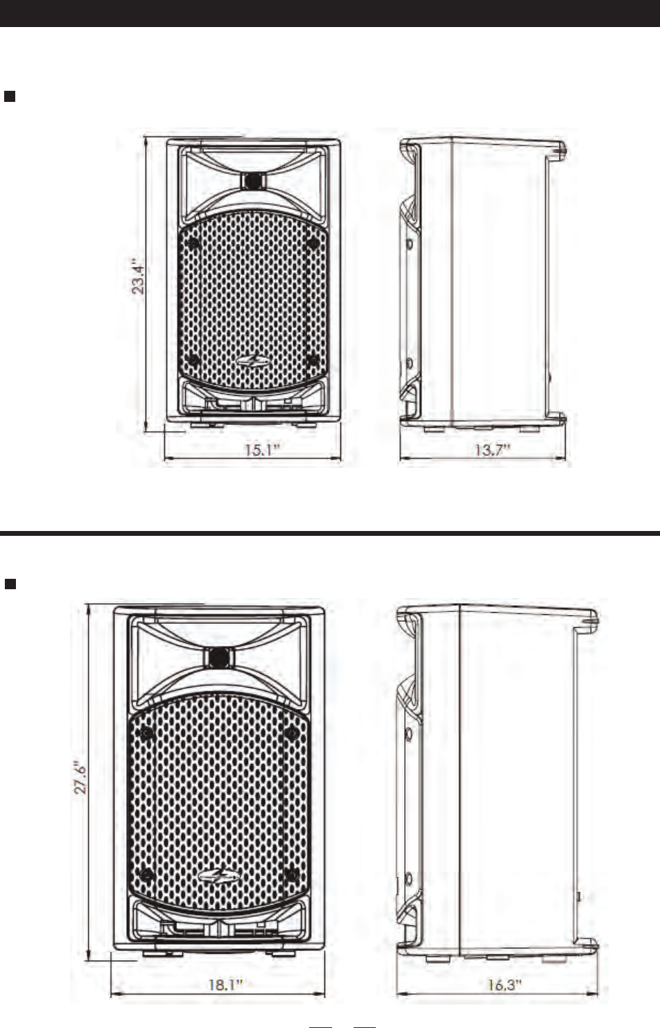 27.6”h x 18.1”w x 16.3”d; 44lbs (15”)