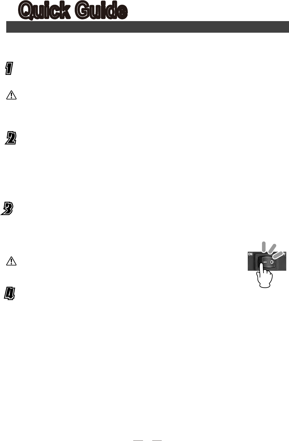Switch up to turn the machines on. Make sure the VOLUME control is down before you turn it on.