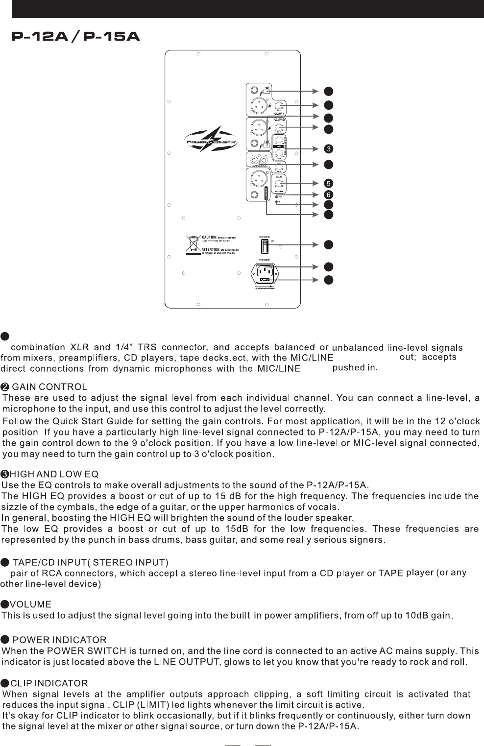 mixers, preamplifiers, CD players, tape decks.ect, with the MIC/LINE SWITCH out; and accepts direct