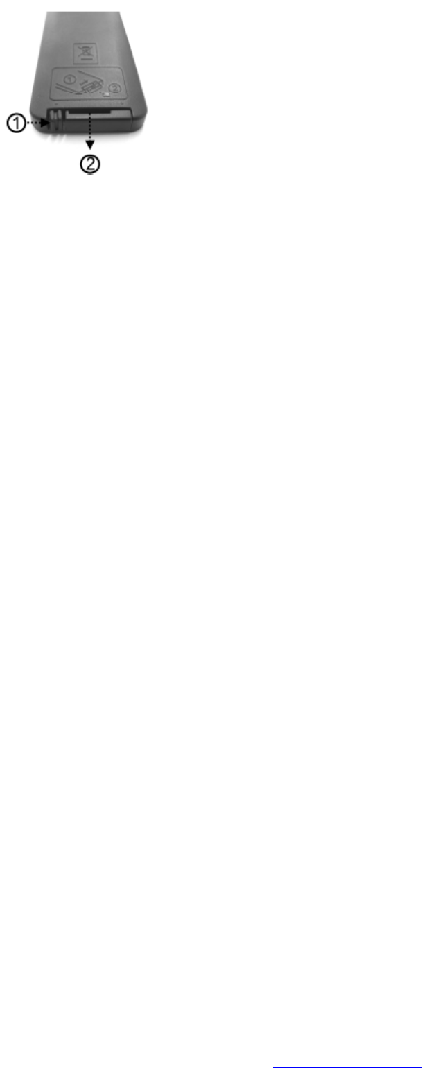 - Press the tab on side of battery cover and then slide off the cover from the remote control