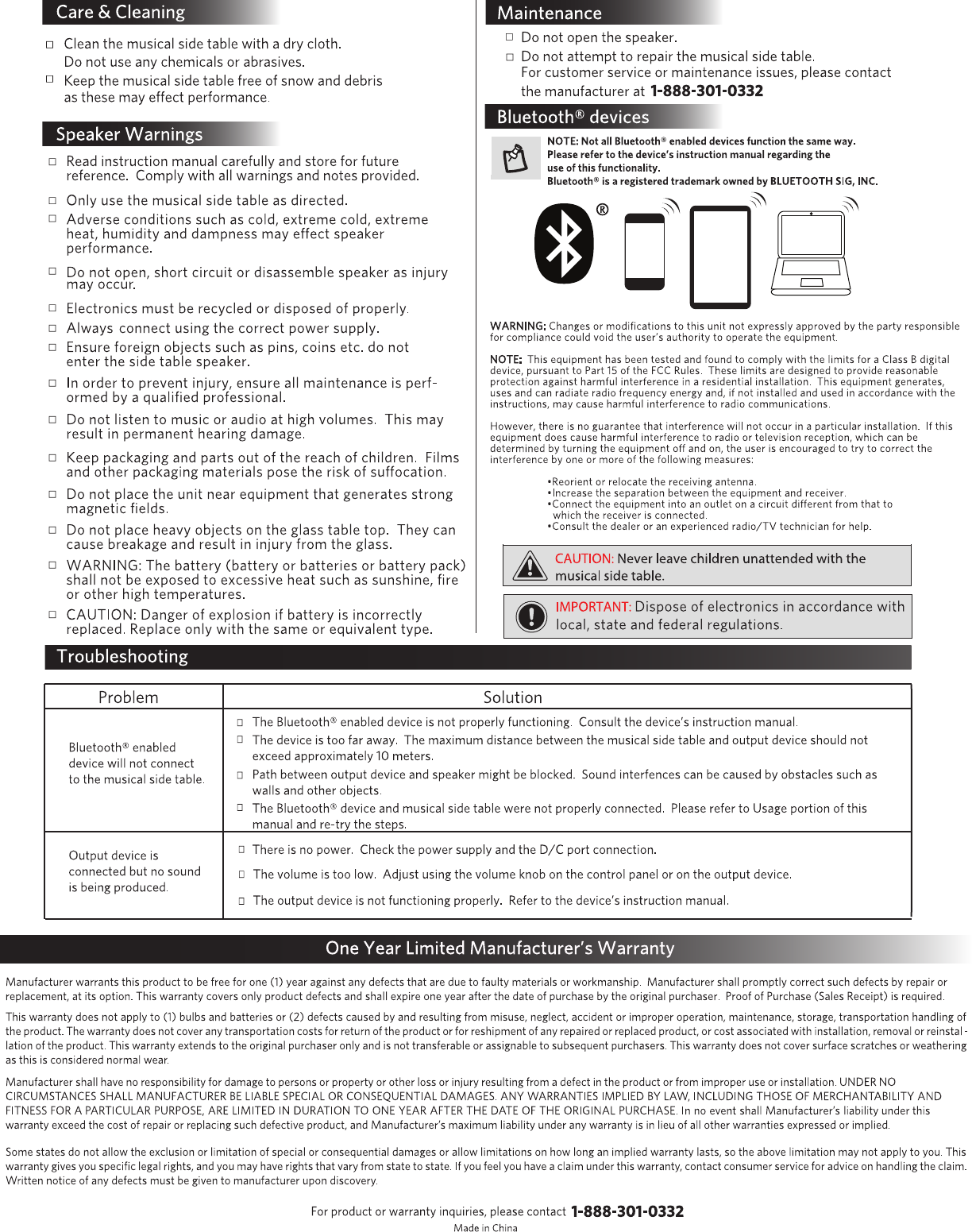Power Beauty PBSTS-1502 Musical Side Table User Manual STS pg1 EN v2 OL 8 20 2