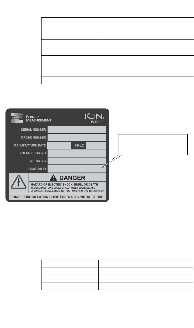 affect voltage input ratings. The ION 6100 meter’s serial number label lists all equipped options. Apply-