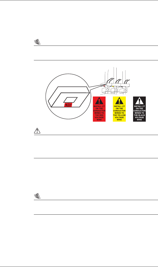 2. Secure the supplied cable ties around the perimeter of each CT to prevent
