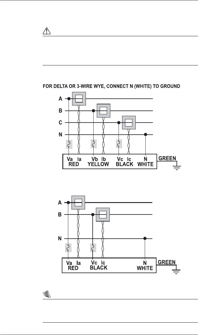 !The ION 6100 meter’s ground wire must be properly connected to earth ground for the noise and surge