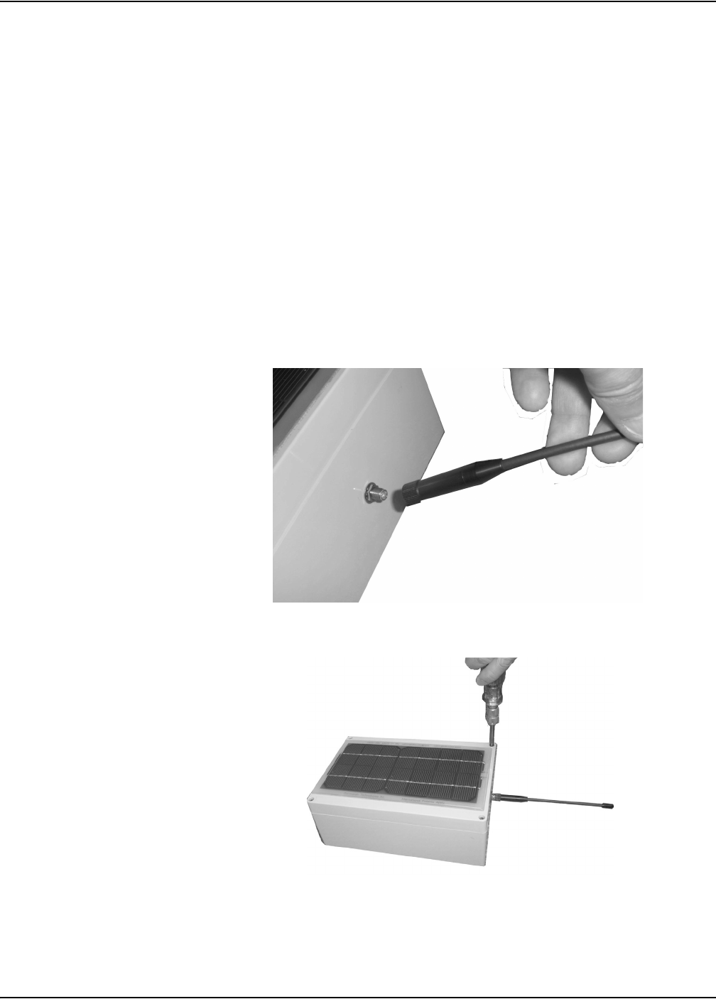 case. Screw the antenna into the connector until snug, but do not overtighten.