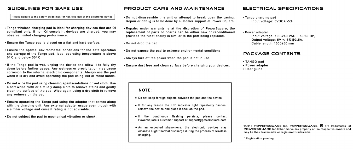 PowerSquare India Pvt. Ltd. TANGO Wireless Charger Manual
