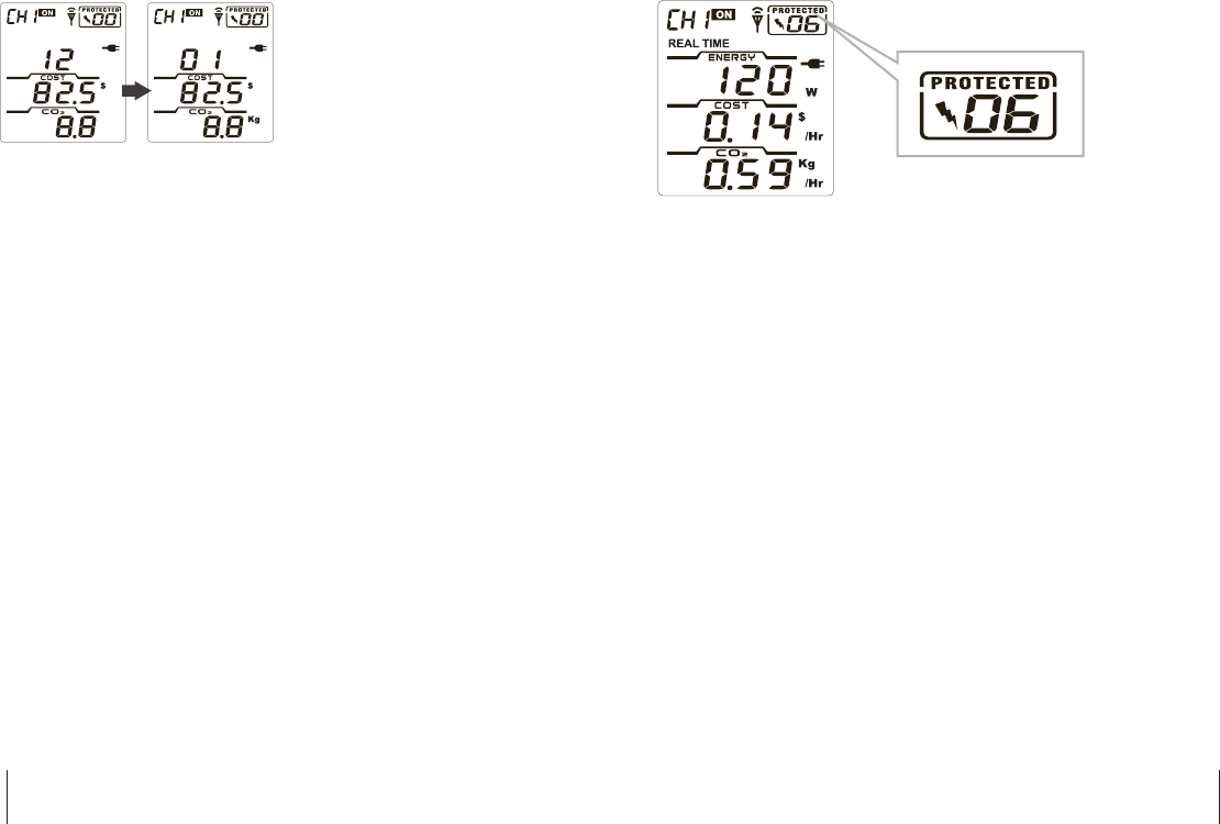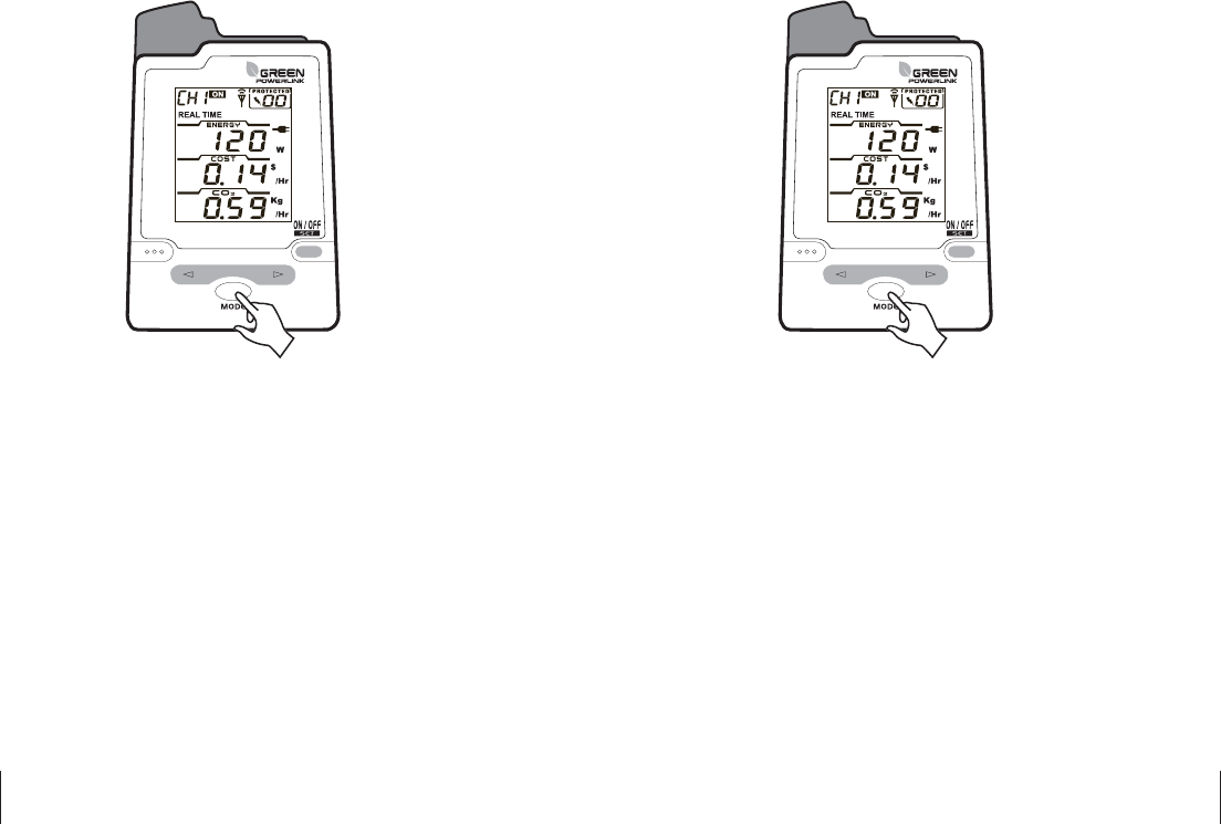 In Real Time Mode, the energy monitor will display instant energy consumption