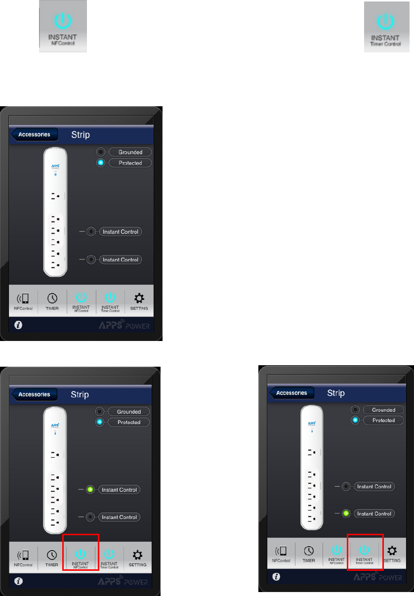 button for NFControl outlets, and “INSTANT Timer” button
