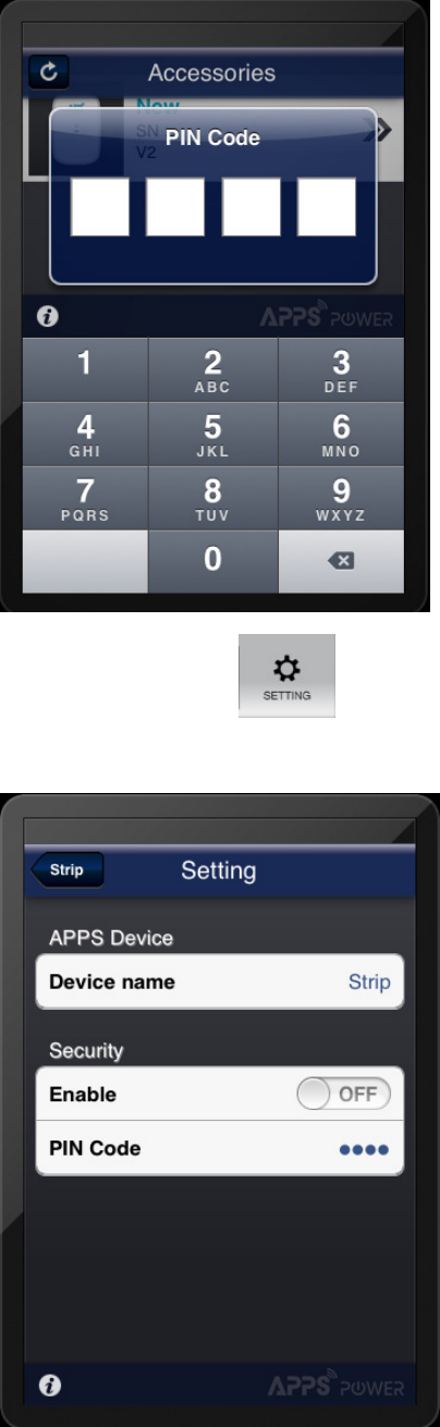 Note : Default PIN code is “1234”