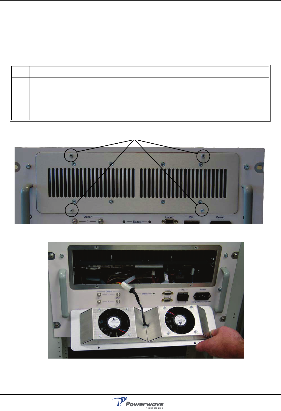 The fan assembly is the only field replaceable unit. If any other components fail, please contact Powerwave