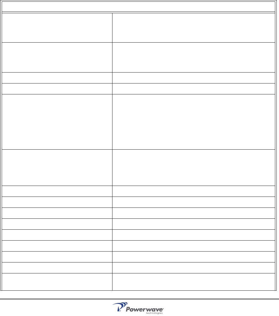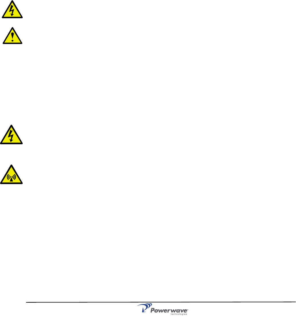 modifications not expressly approved by Powerwave Technologies, Inc. for compliance could void the user’s authority to operate this