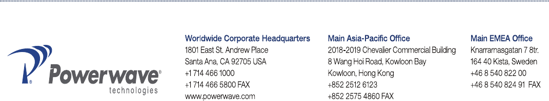 Phone +1 714 466 1000 – Fax +1 714 466 5800 – Internet www.powerwave.com