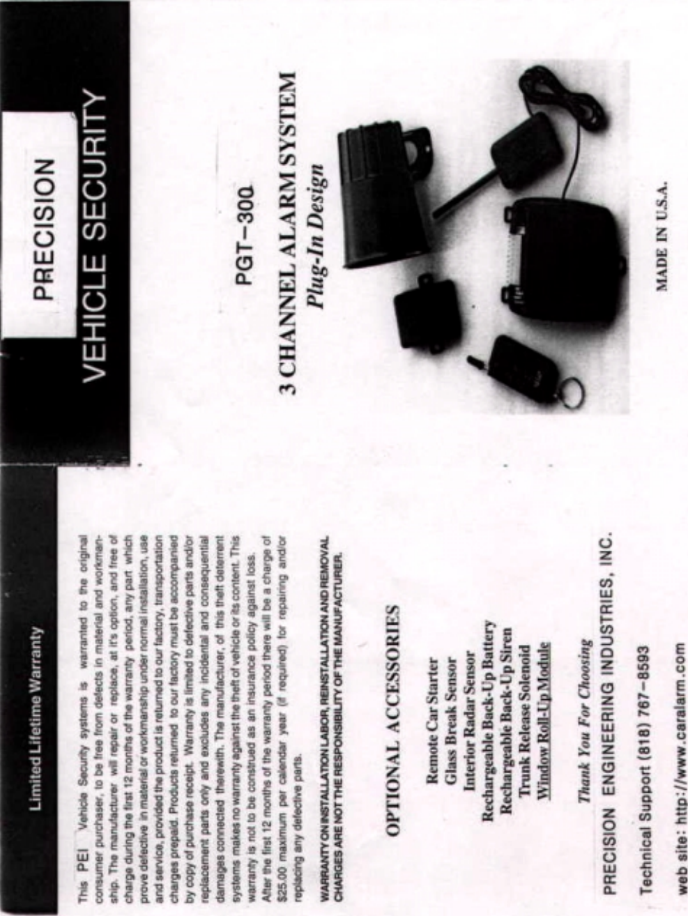 Precision Engineering Ind Inc AUTO ALARM user guide