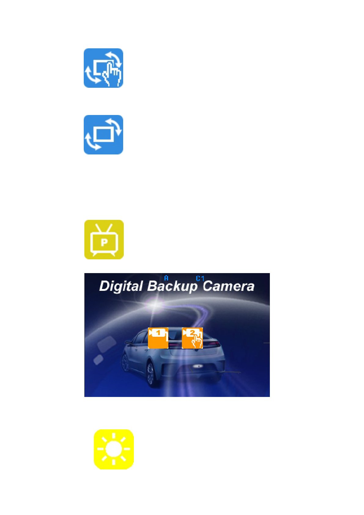 Icon, press the Confirm key to select the camera to Mirror/Rotate, select CAM1 or CAM2, press