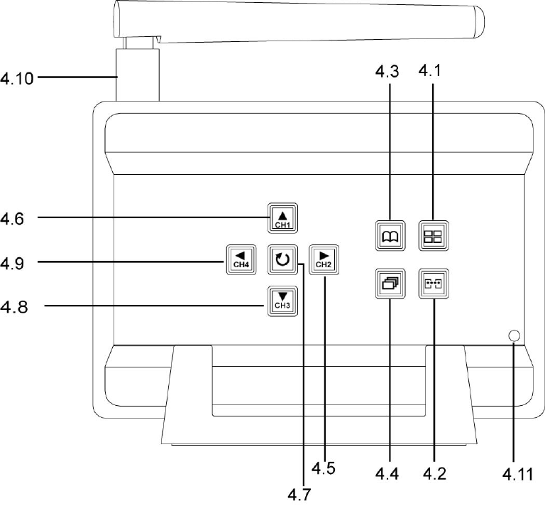 Channel4~Channel1. The receiver will skip the channels that cameras are not