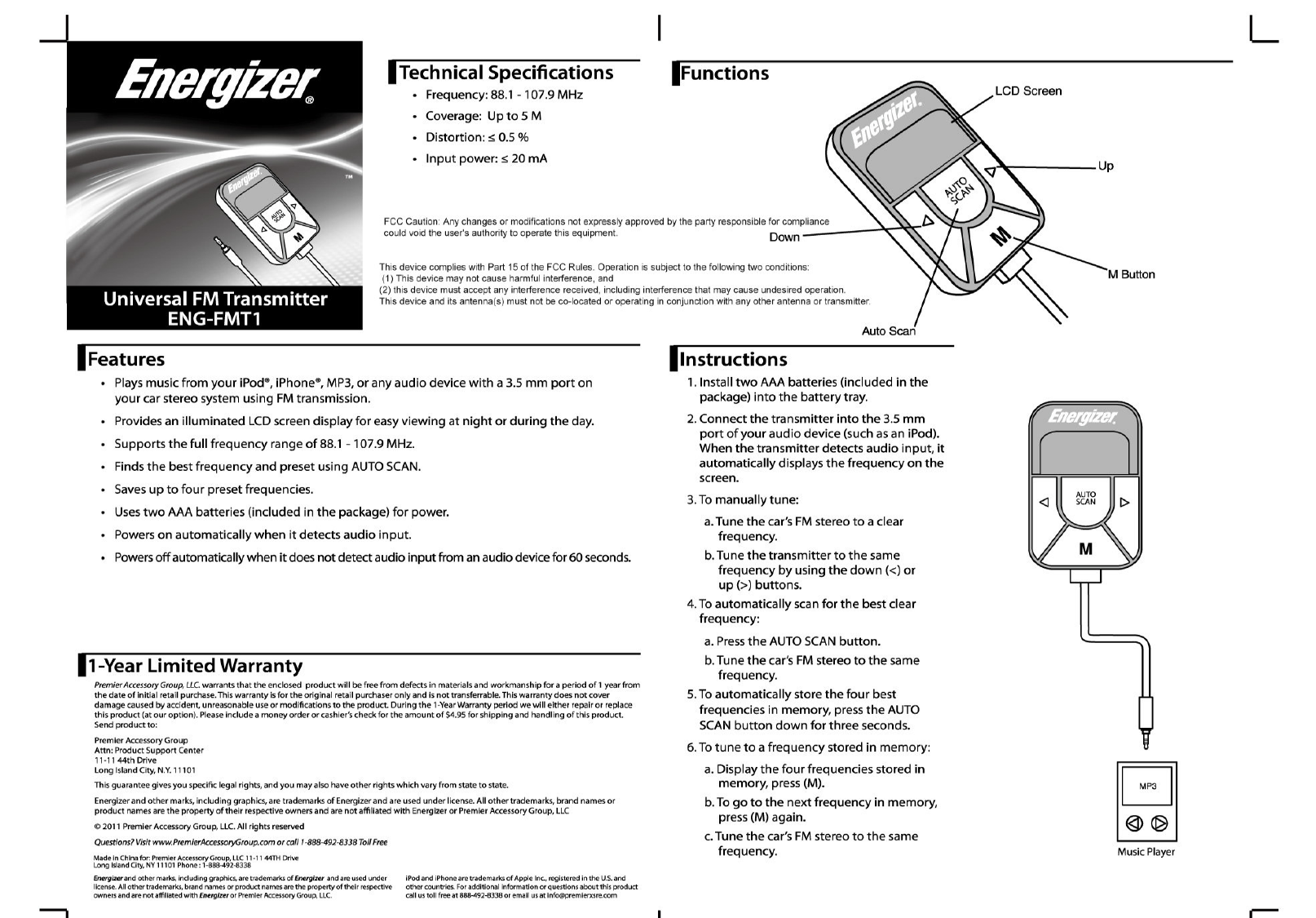 Premier Accessory Group ENG-FMT1 Universal Wireless FM Transmitter User Manual C8ABD2B3D5D5C6AC