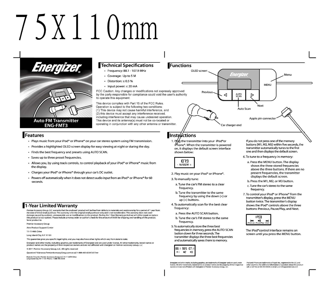 Premier Accessory Group ENG-FMT3 Auto FM Transmitter and Charger User Manual C8ABD2B3D5D5C6AC