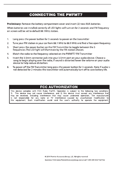 Premier Accessory Group LLC FM Transmitter PWFMT7 OK
