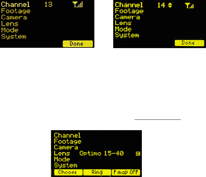 a. Press the Menu key. Navigate to the Lens selection. Press the Ring softkey and