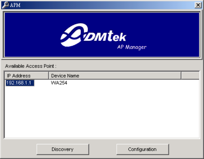 “Discovery” in order to find the Module. Window appears indicating the IP Address of the Module