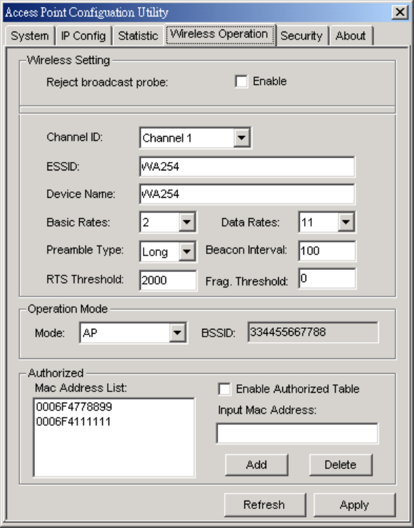 Reject broadcast probe: When checked the Module broadcasts the ESSID to the stations, if