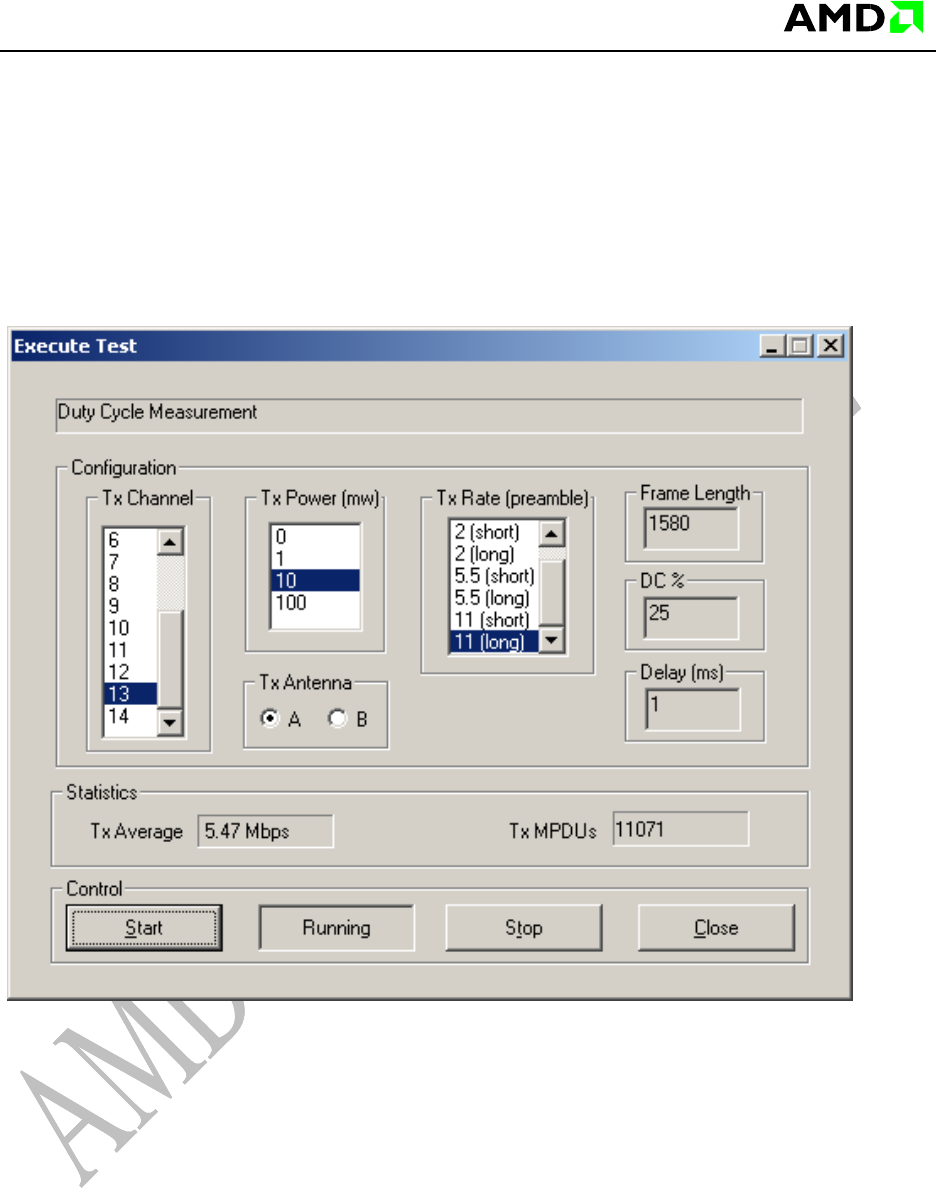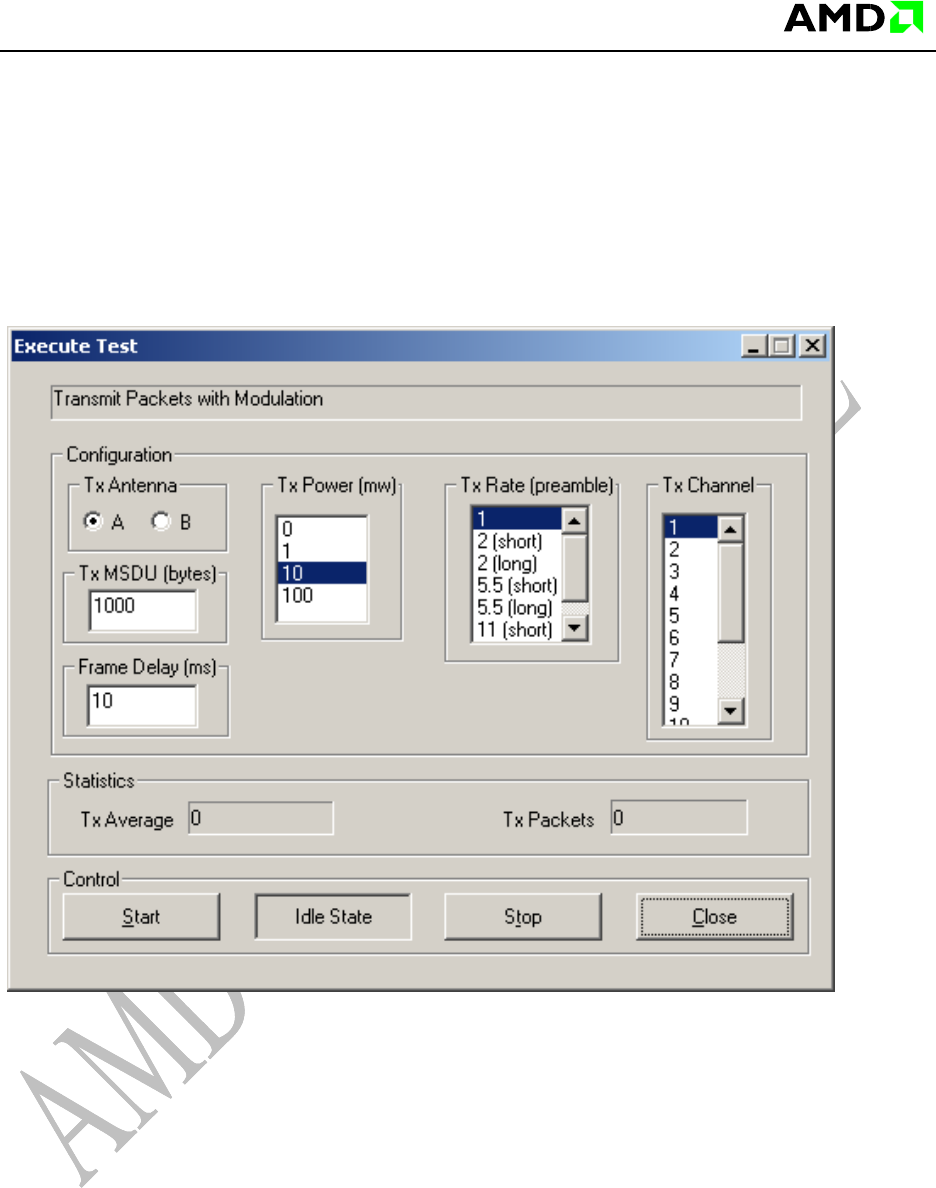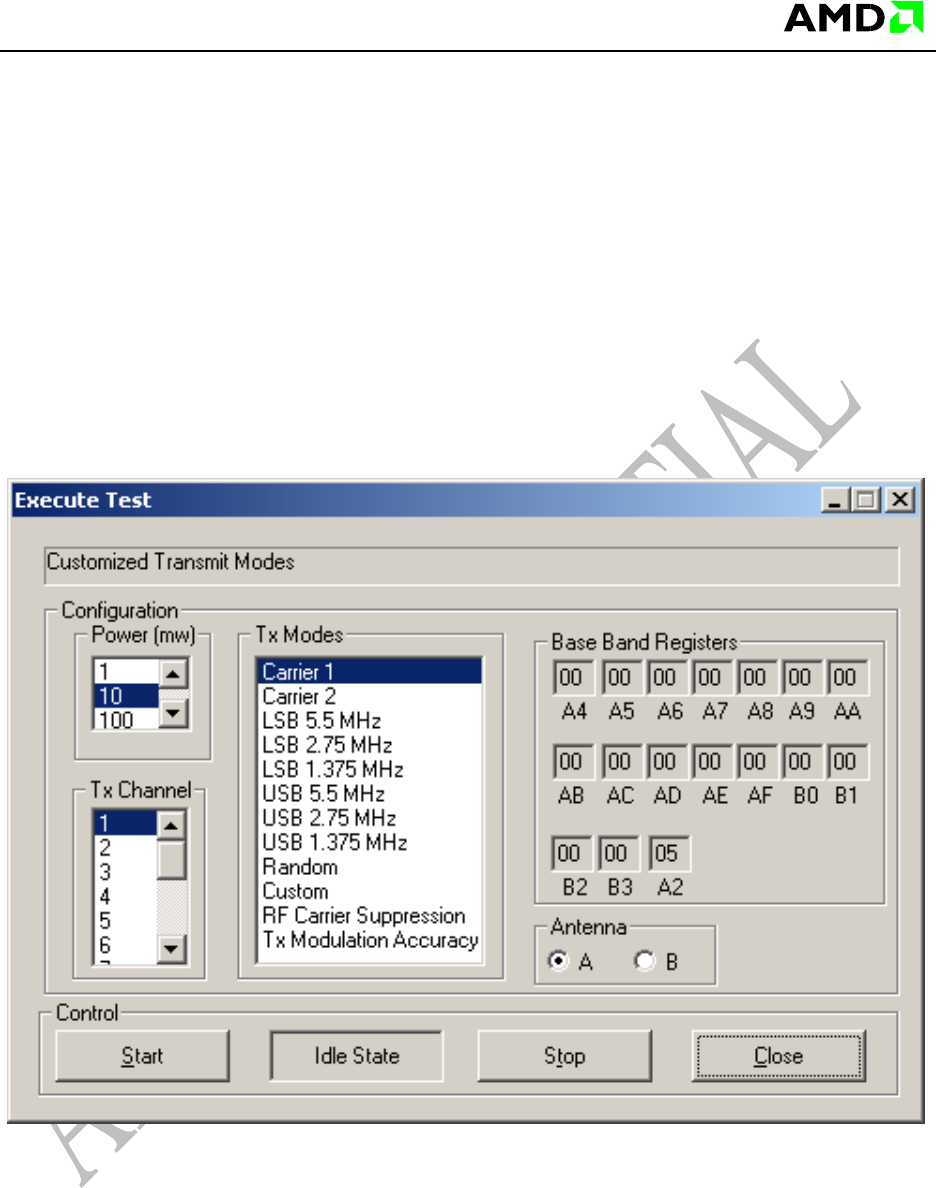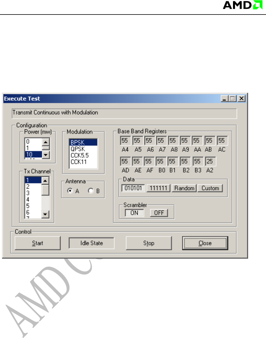 Select the appropriate configuration and click Start to initiate the selected Tx mode. To