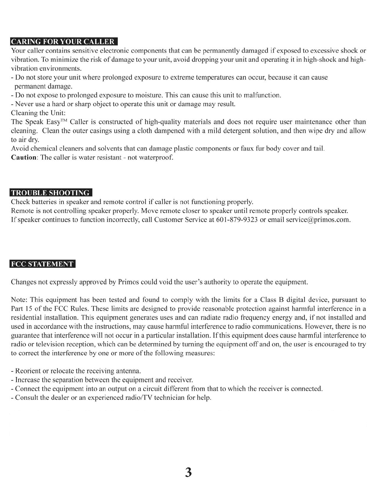 Primos 5500RX2 SPEAK EASY-DEER User Manual Speak Easy Instruction Manual 1 Front
