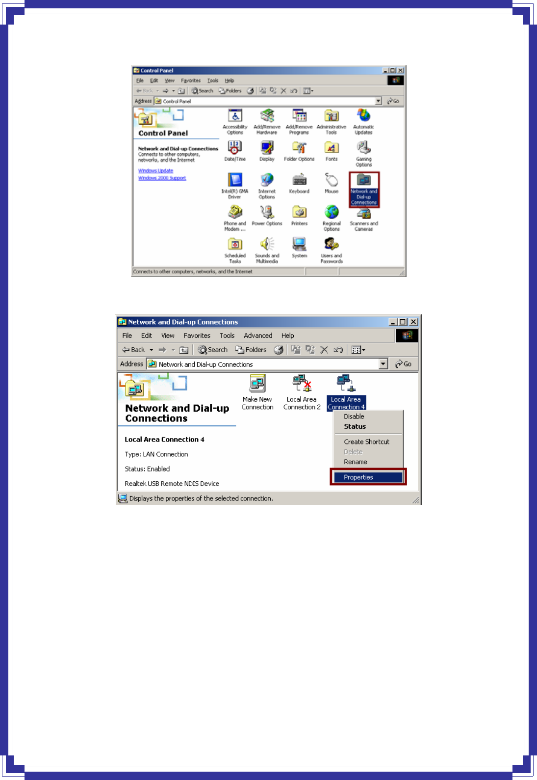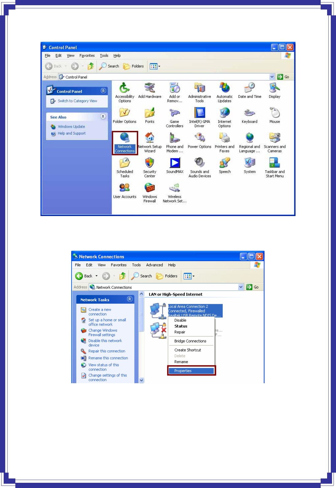 Step 1: (a) Right-click My Network Places and select Properties in the main window