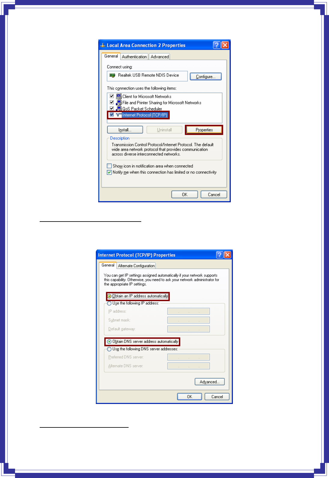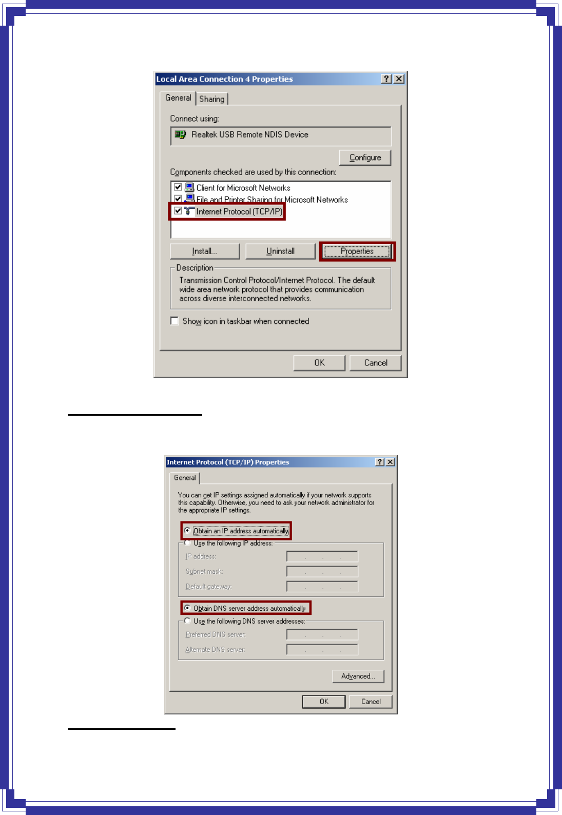 Step 5: Select Obtain an IP address automatically and Obtain DNS server address