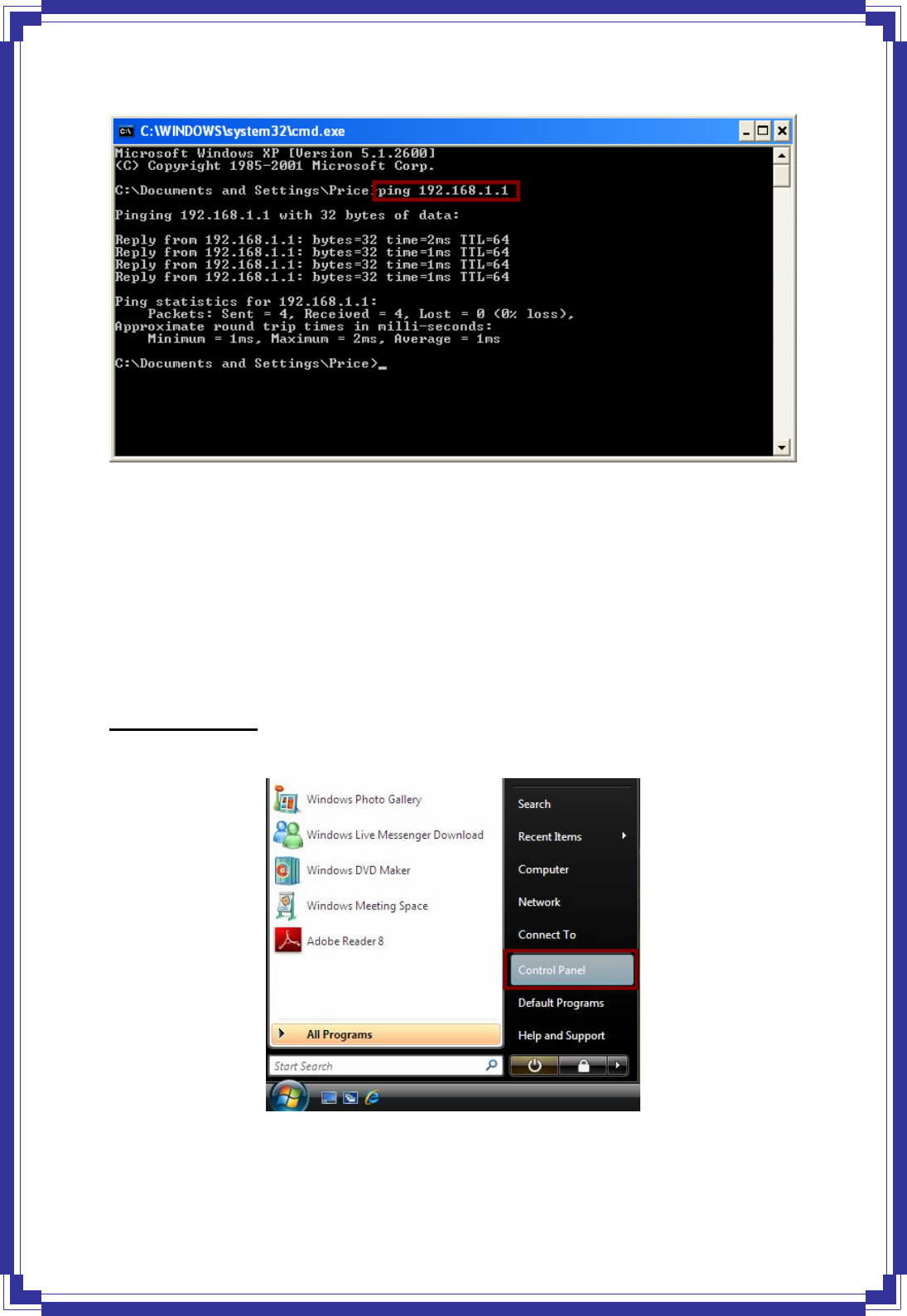 1) Type ping 192.168.1.1 under DOS prompt and the following messages will appear: