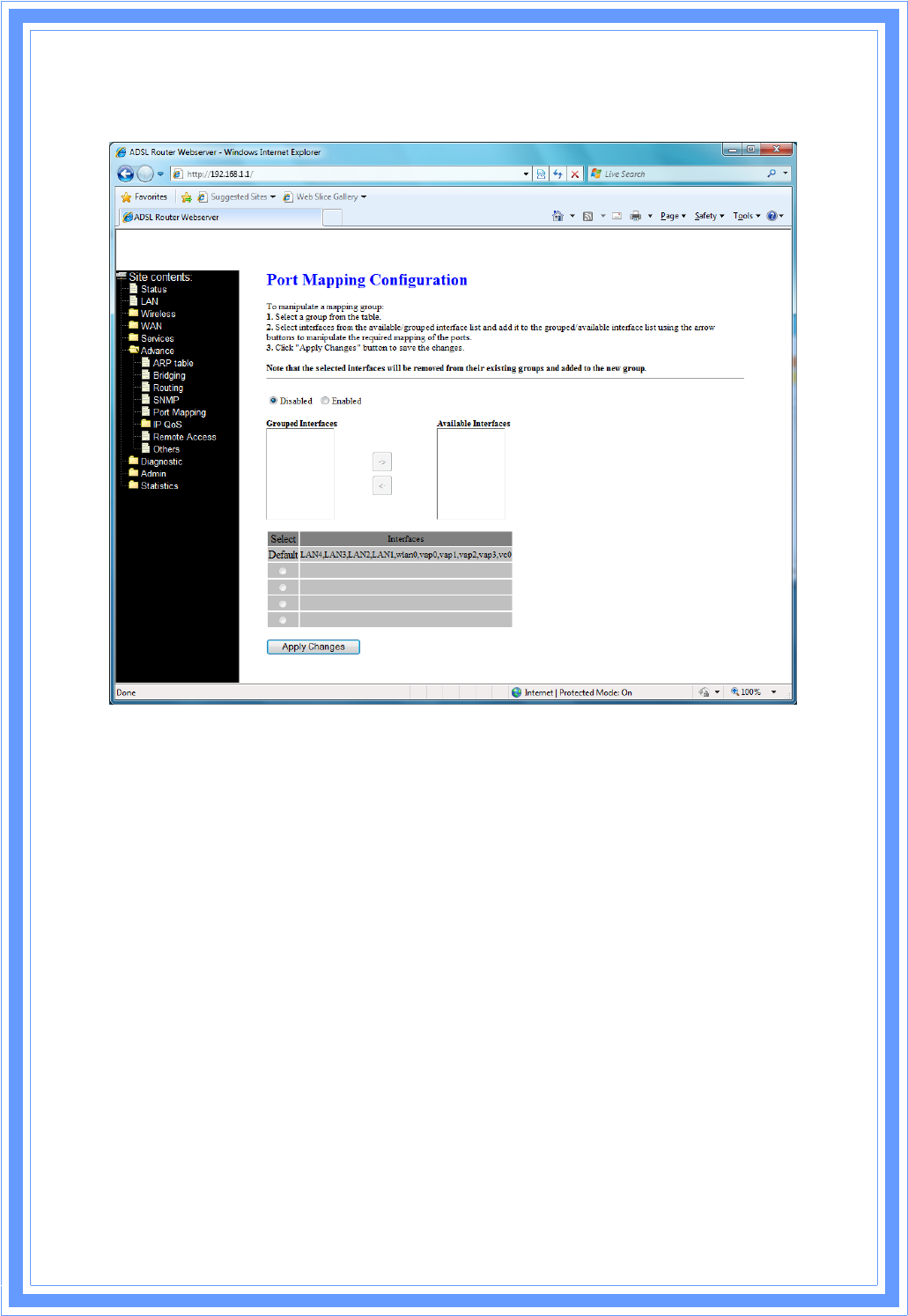 SelecttheInternetConnectionͲͲTheavailableWANsideinterfacesarelisted.Youhaveto