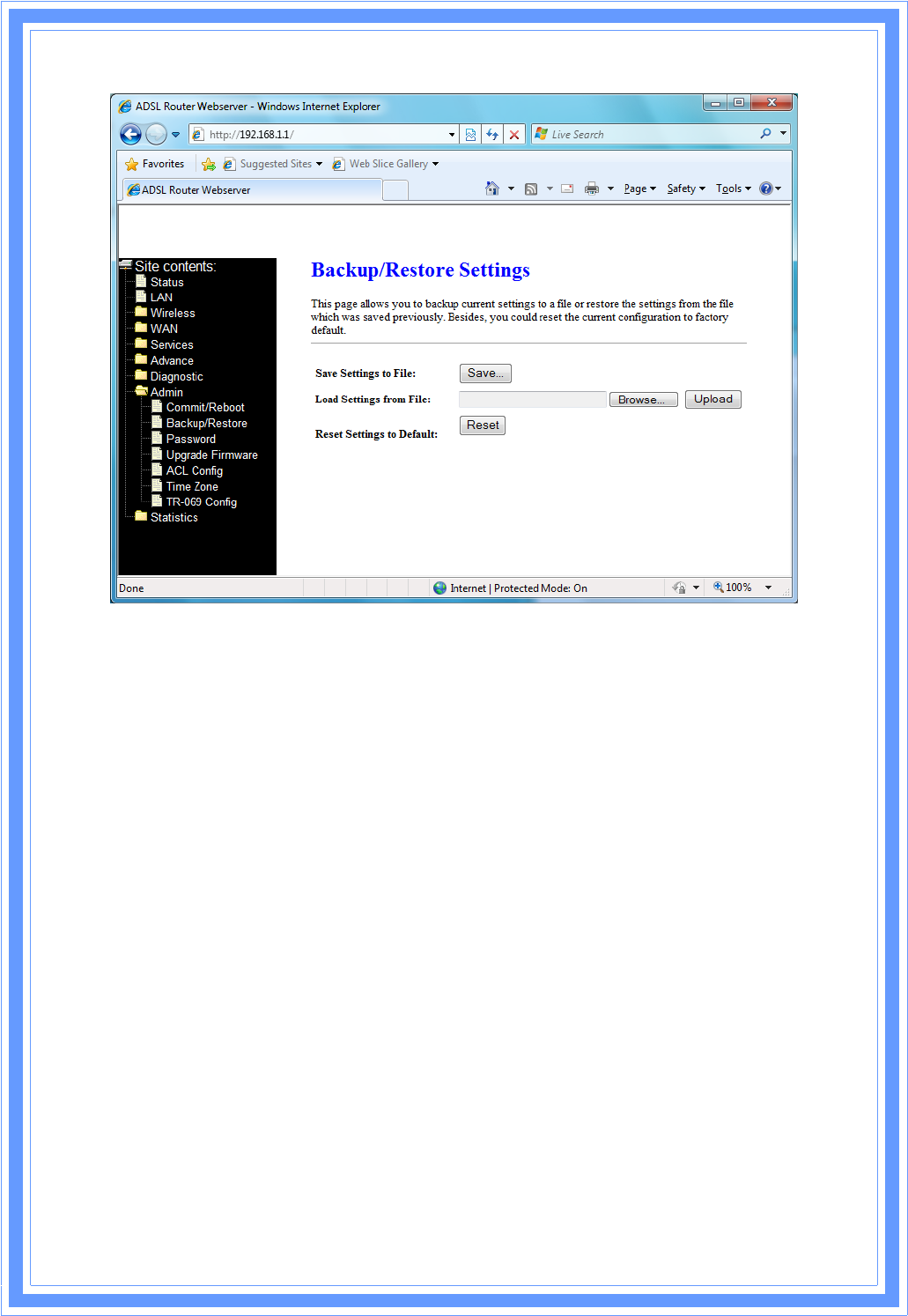 Thispageallowsyoutobackupandrestoreyourconfigurationintoandfromfileinyour