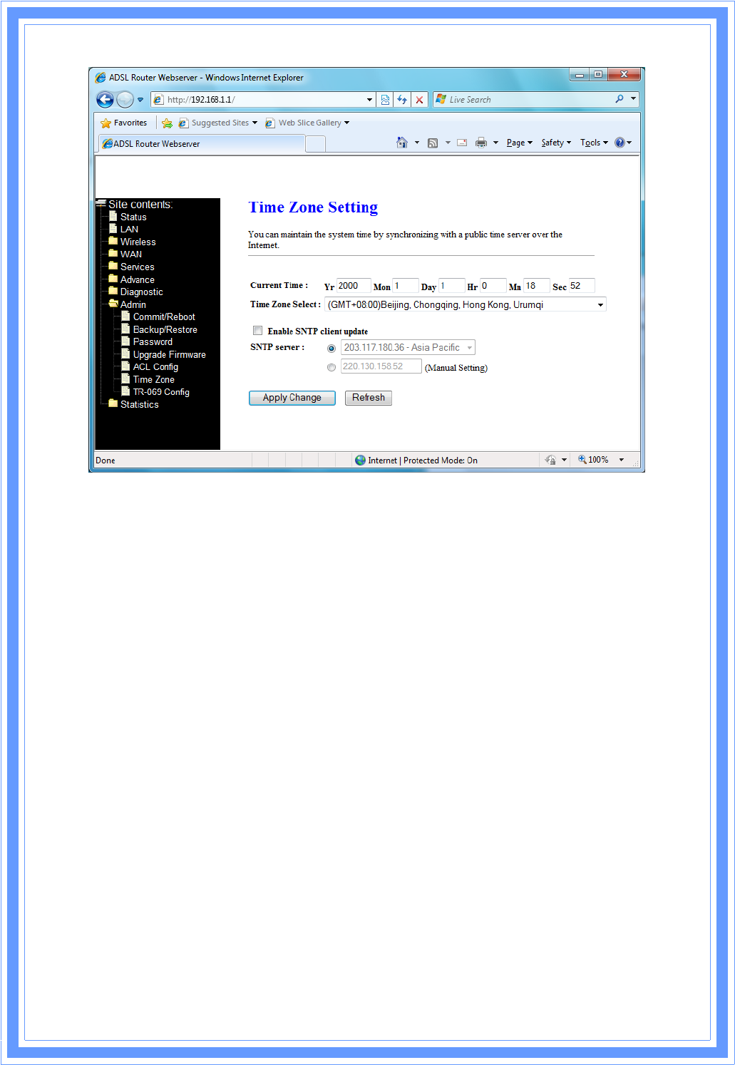 TimeZoneͲͲSelecttimezoneinwhichtheDSLdeviceresides.