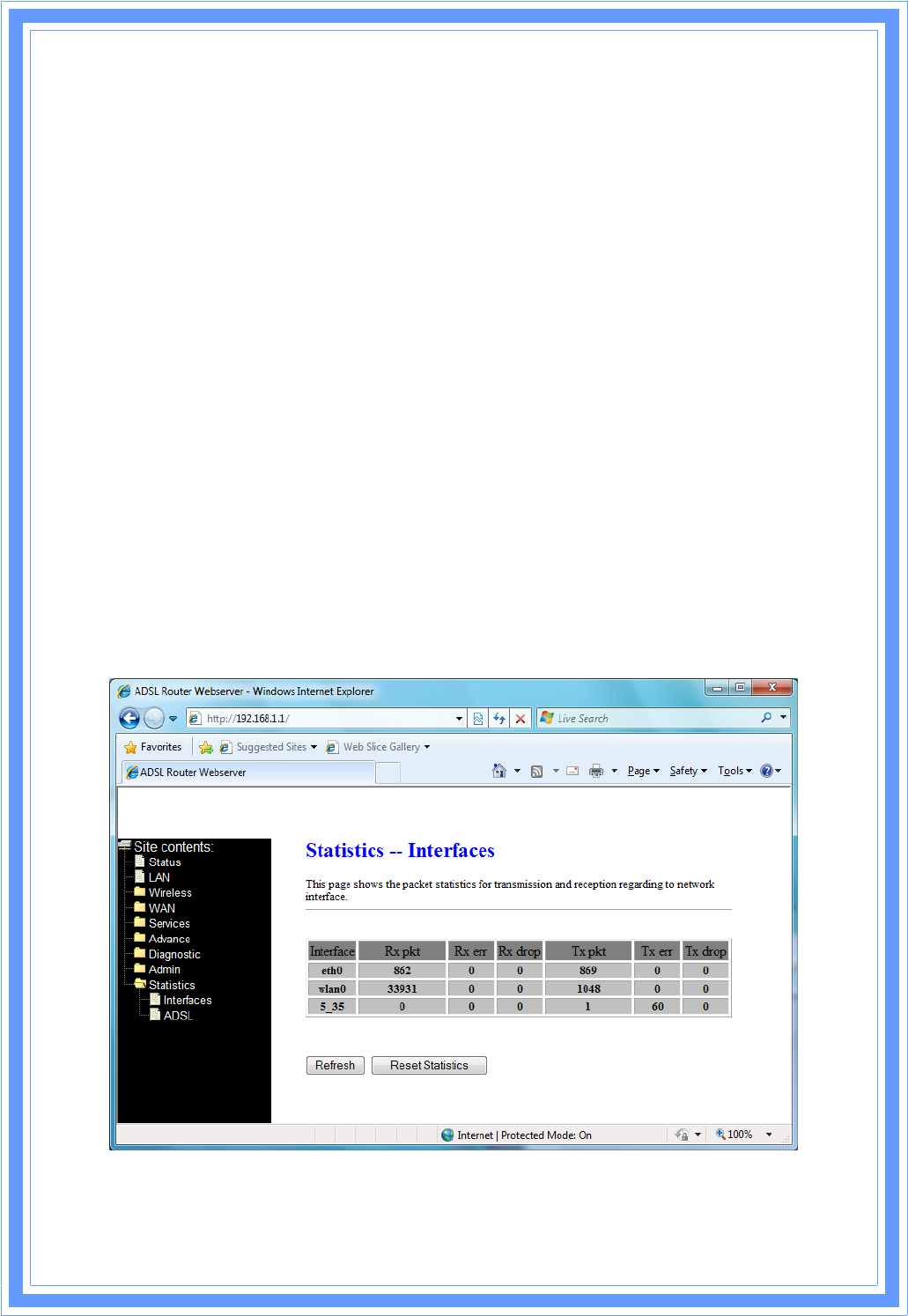 ThispageshowstheADSLlinestatisticinformation.