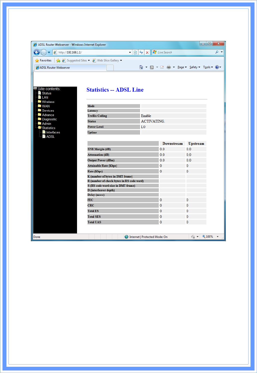 TheDSLdeviceshowsthedifferentlayerofnetworkstatisticsinformation