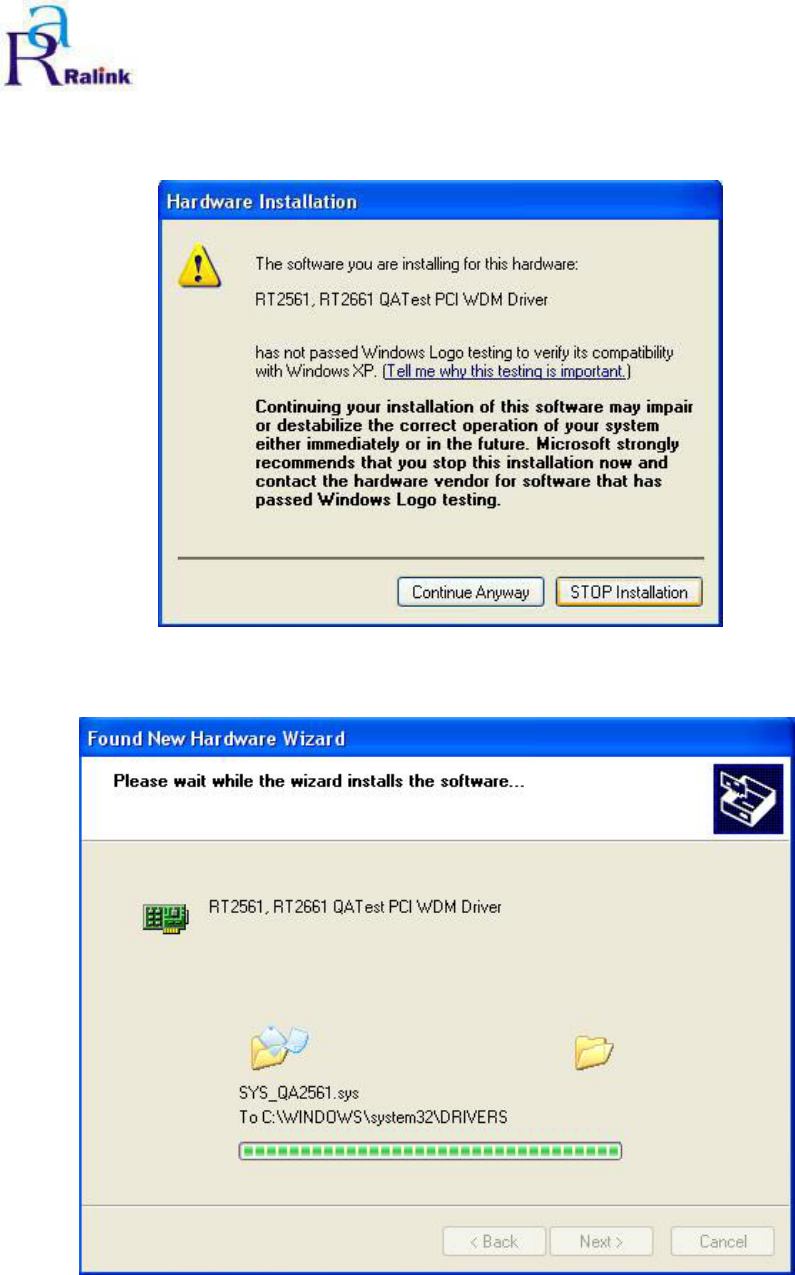 Step 8:Pop up the warning wizard for asking you if you really want to install the “RT2561,