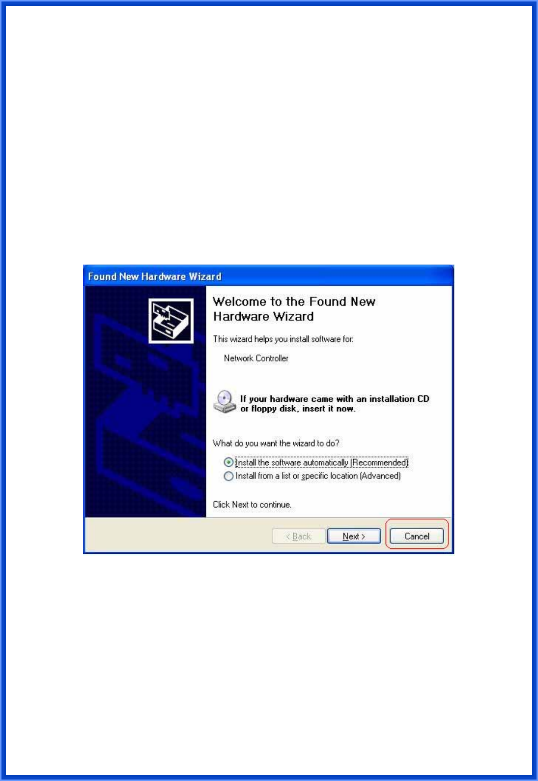 Step3: Insert Wireless PCI LAN Card Installation CD into CD-ROM drive then windows