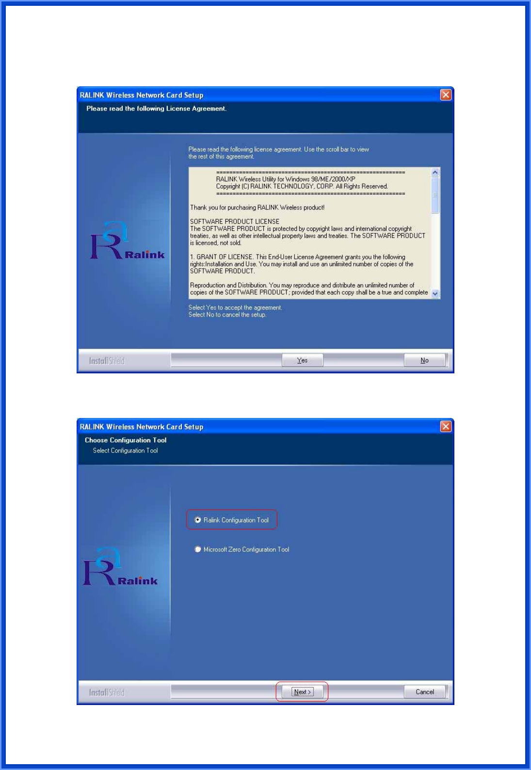 Step6: Choose Configuration Tool, Ralink Configuration Tool, and click Next to continue.