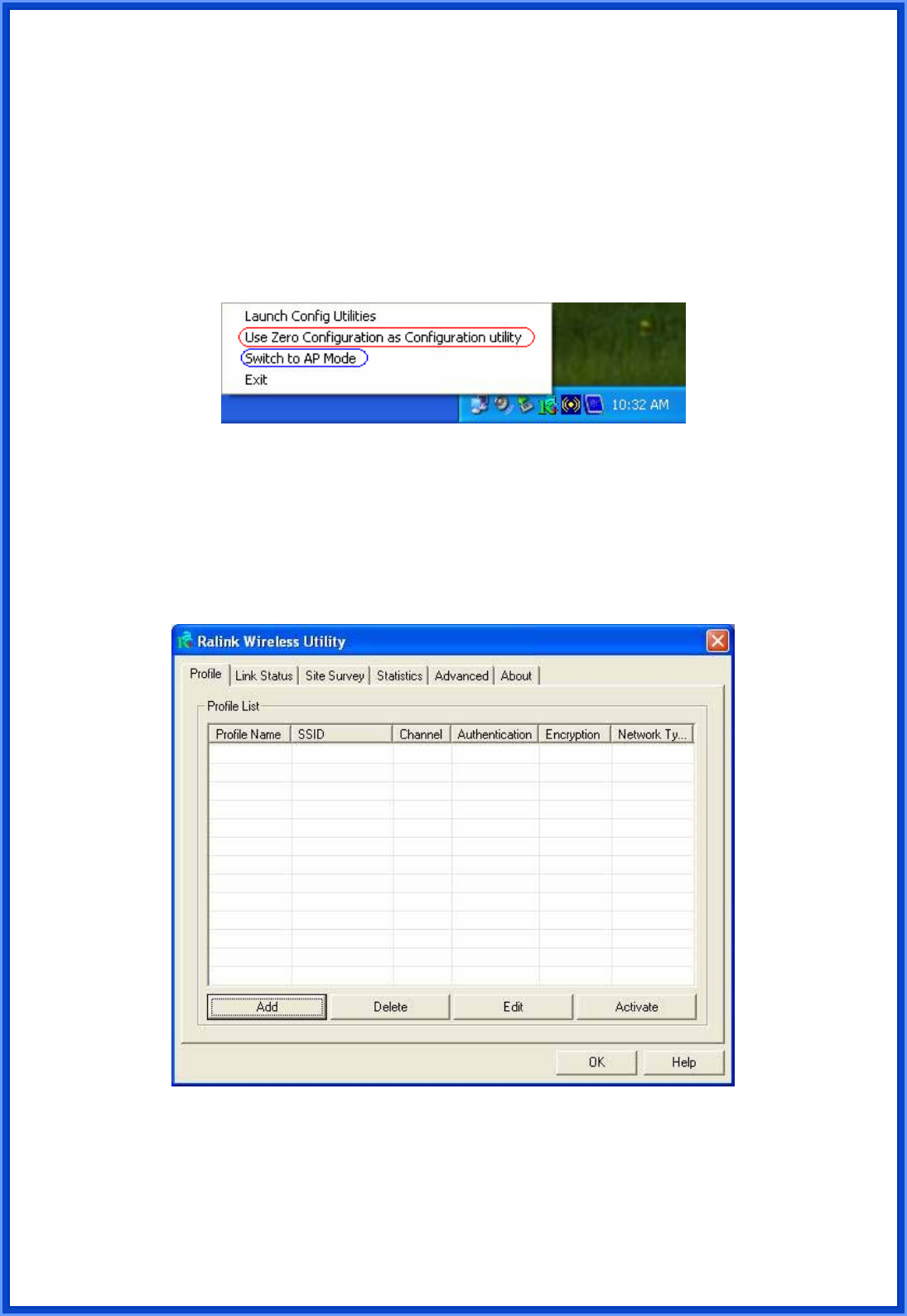 Card: Use Zero Configuration as Configuration Utility (Windows XP default) and Switch to