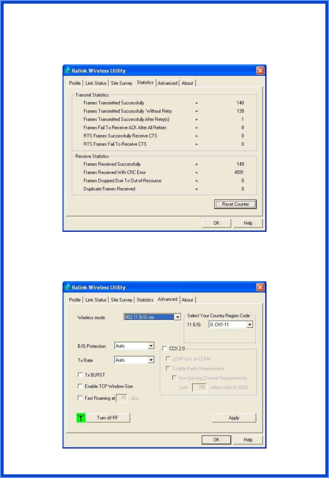 Step9: When Utility setup is completed, the Wireless LAN Card utility’s main page will