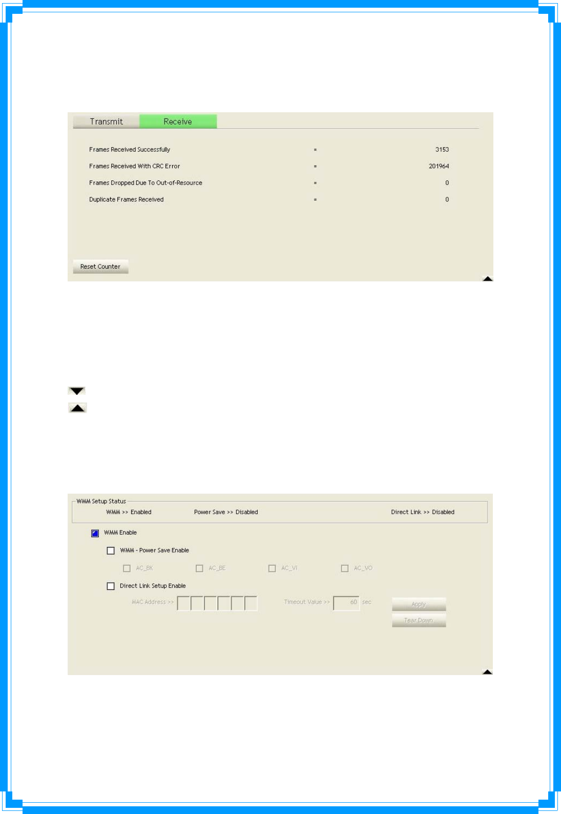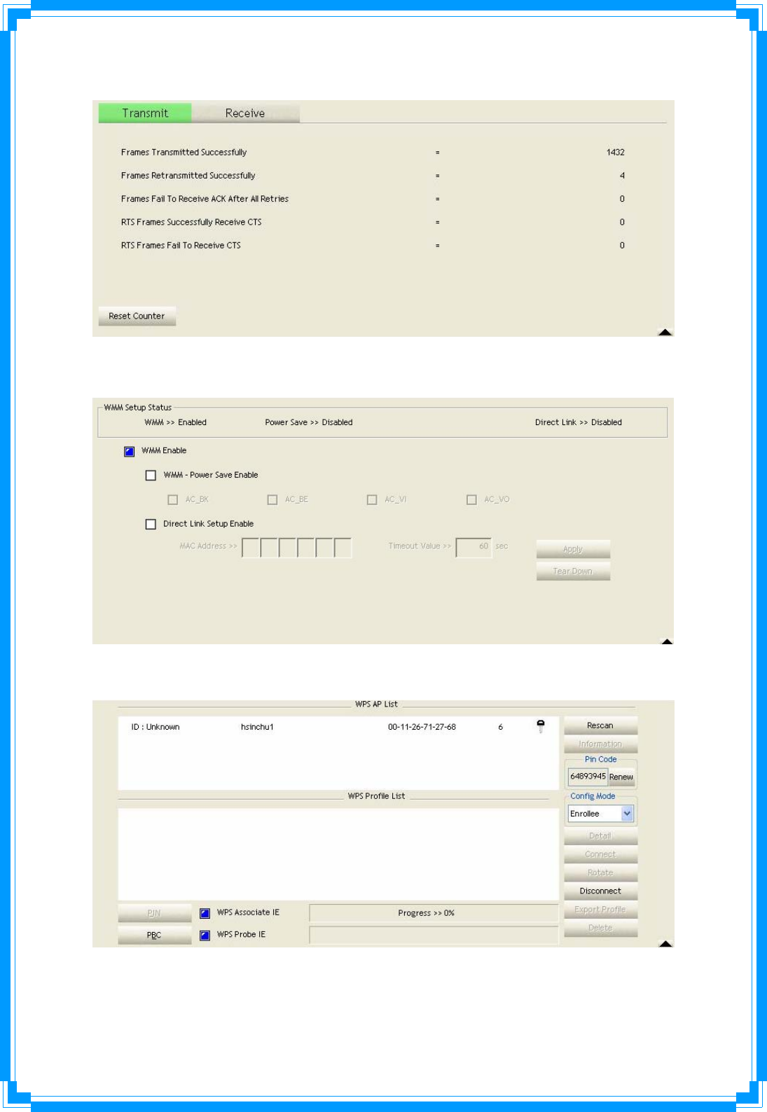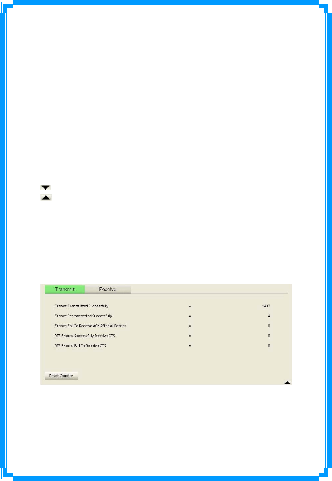 Statistics page displays the detail counter information based on 802.11 MIB counters. This