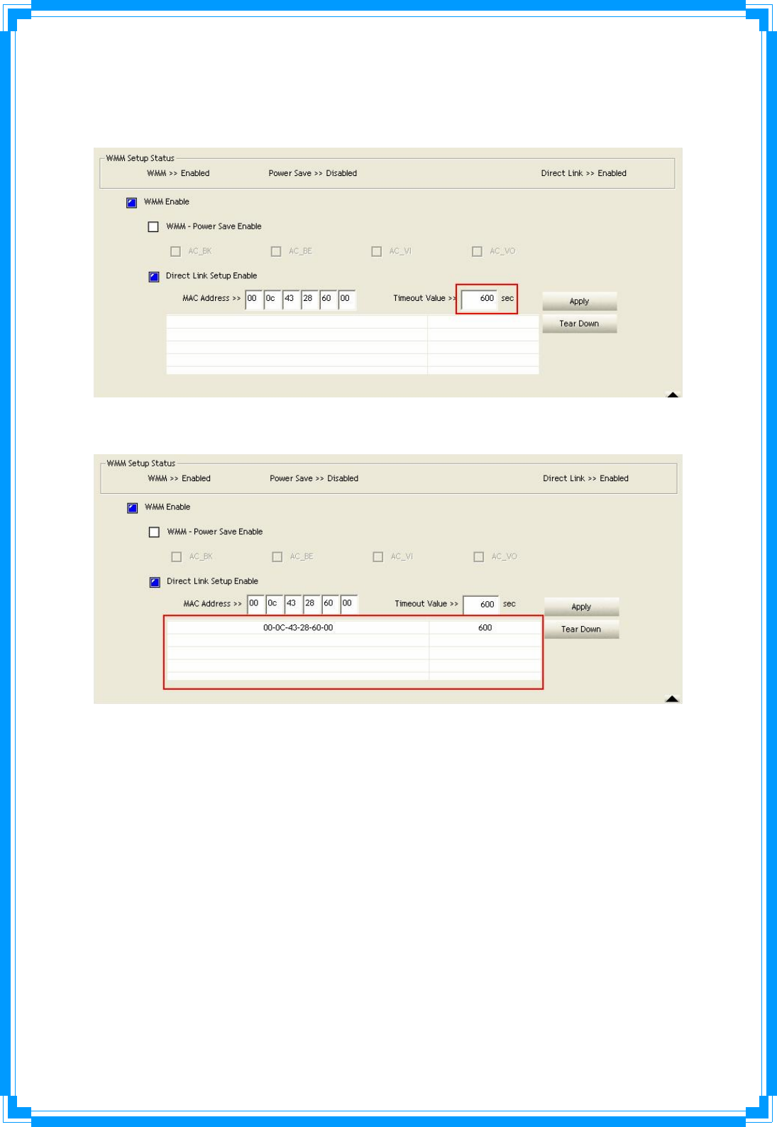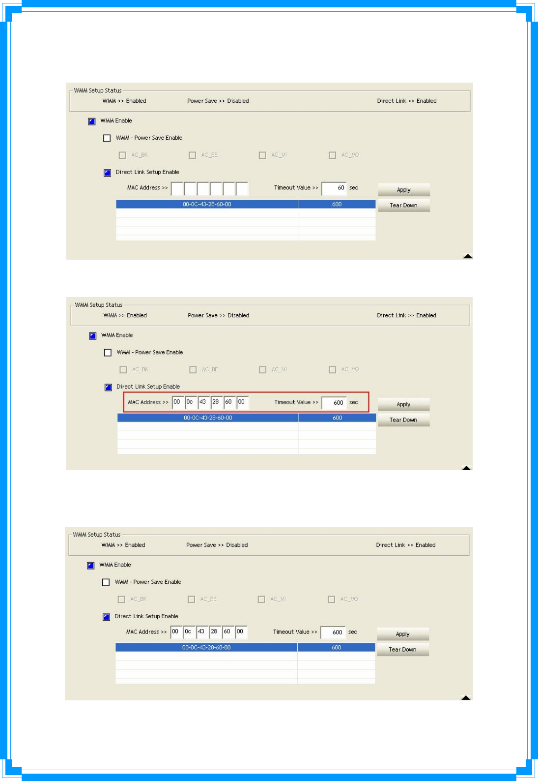 (2) Display the values of “DLS Status” to “Direct Link Setup” as follow: