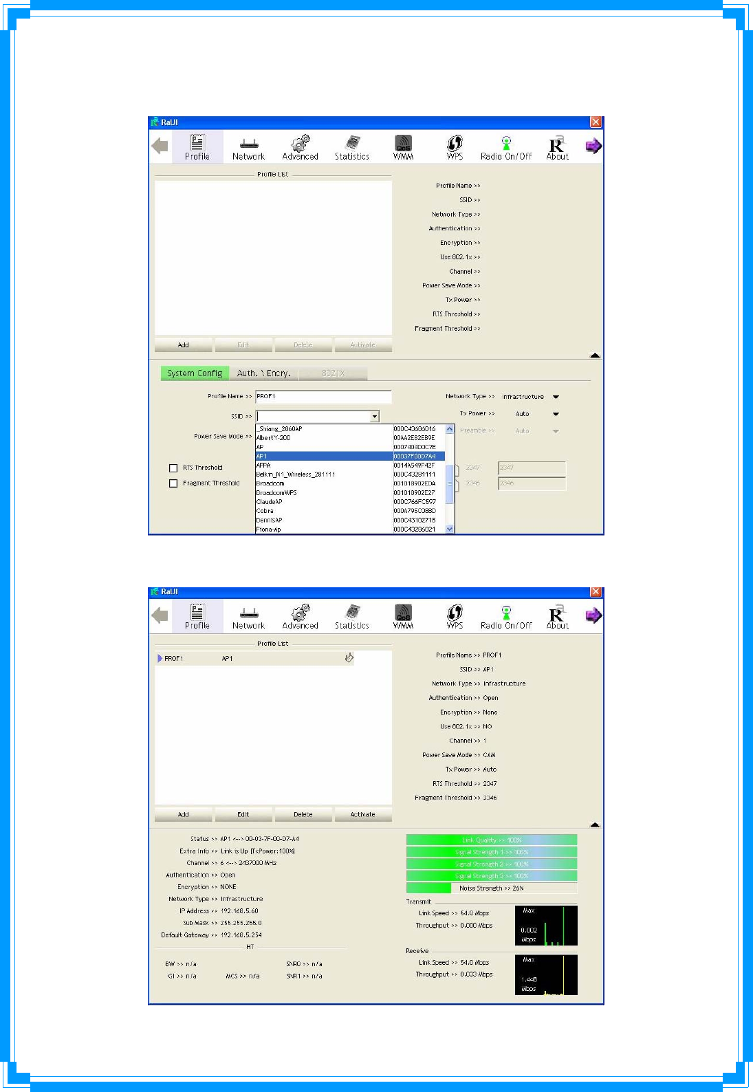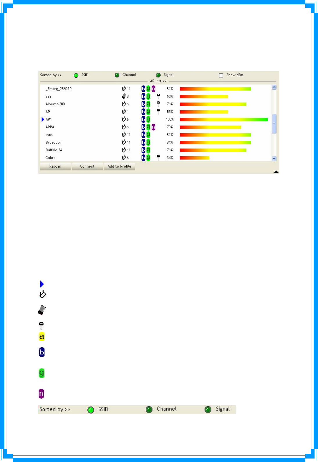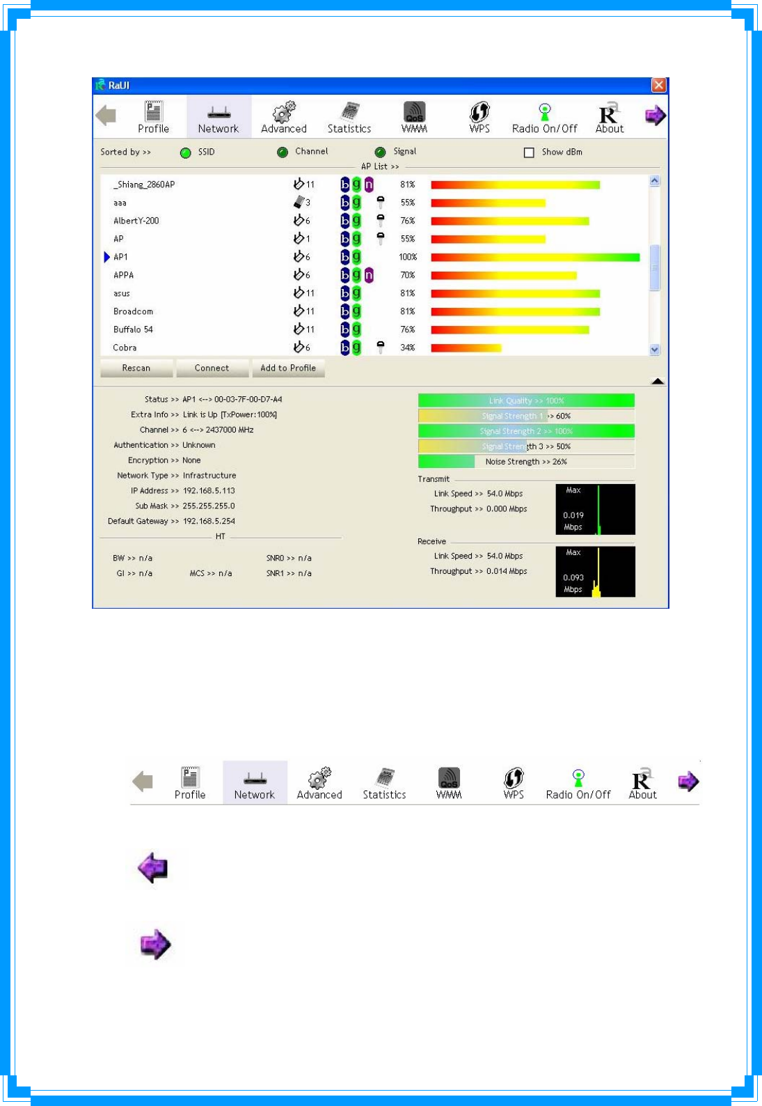 seconds, the AP list will updated with the result of BSS list scan. The AP list include most used