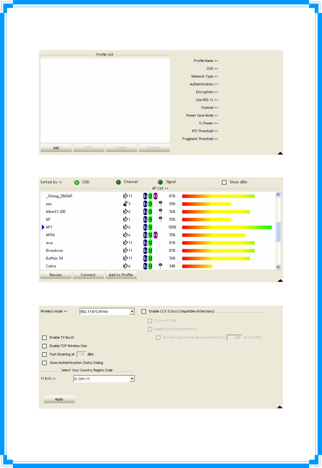 modes are supported. (802.11 A/B/G mix selection item only exists for A/B/G adapter;