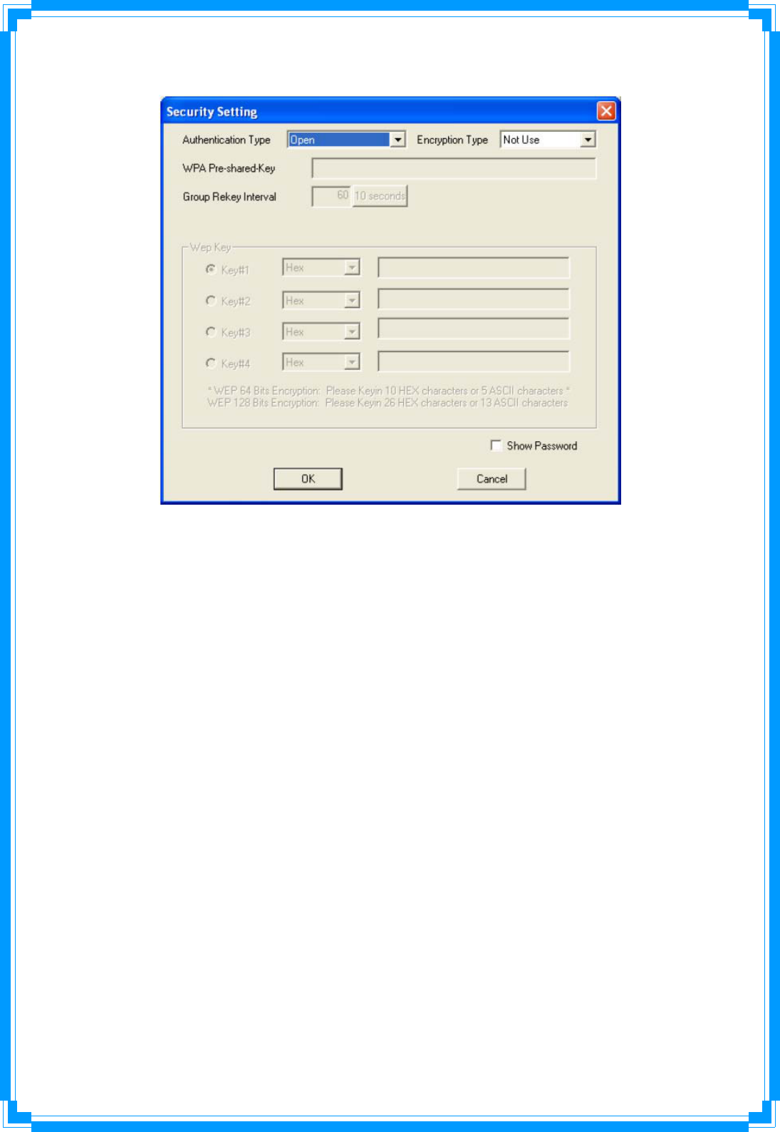SecuritySetting:Setthesecurityoptions(wirelessdataencryption).Pleaserefertochapter