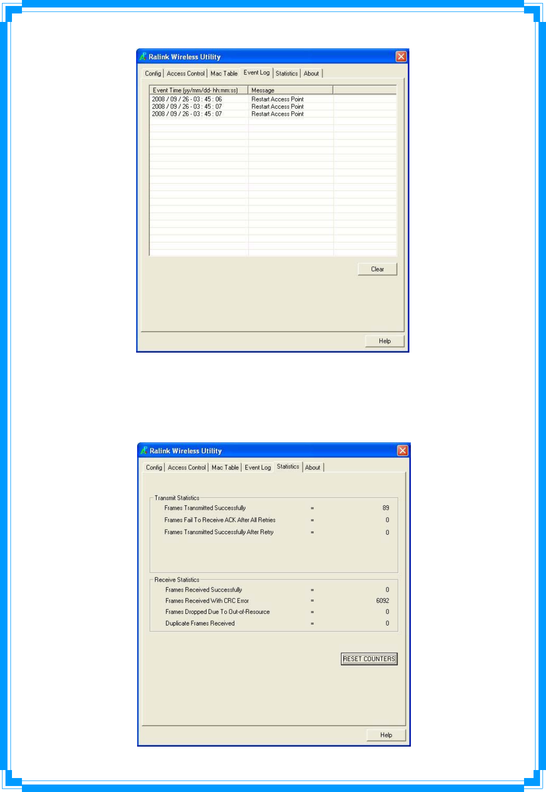 ‘Statistics’tab,andtheeventlogwillbedisplayed.Click‘RESETCOUNTERS’buttontoreset